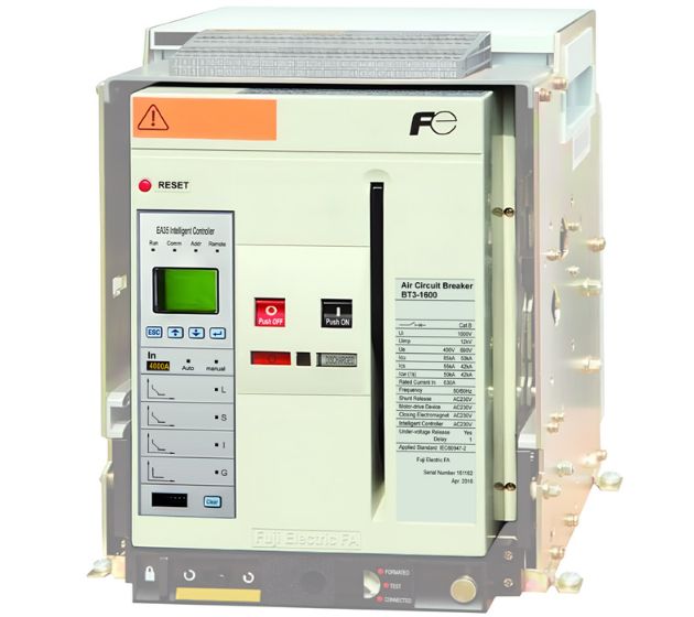 Máy cắt ACB Fuji 3 pha, dòng định mức 1250A, dòng cắt ngắn mạch 65kA. BT3-1600X/31250E dùng để kiểm soát, bảo vệ quá tải và ngắn mạch.